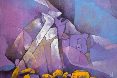 Nicolas Péron explore les différentes possibilités de représentation de la nature et du paysage par la contemplation et l'observation. Il cherche, au cours de longues balades, des endroits cachés. Il fait des croquis, dessins, aquarelles et revient sur le terrain à plusieurs reprises pour en faire plusieurs versions. Ensuite, le tableau naît d'une seule traite. L'artiste crée, par sa rêverie, une nature abstraite, onirique, éphémère où il se sent bien, avant de la livrer au regard critique.