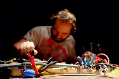 Workshop de construction et de performance, mené par Jason Sidney Sanford : musicien, artiste, luthier expérimental, professeur à l'université Colorado Boulder. Avec la participation de Pierre G. Desenfant : musicien en solo dans le projet Blackthread et adepte des synthétiseurs modulaires.